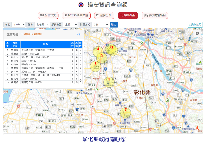 本縣110年1月份交通事故死傷情形,合計:傷 2,814 / 死 18人,珍愛生命,請遵守交通規則。